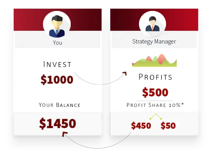 By choosing from 600+ Strategy Managers, you decide who to follow & how much you want to invest.